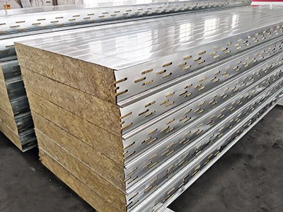 岩棉烘道板其上下表面采用镀锌钢板或不锈钢钢板、彩钢板,厚度为0.4-0.8mm。通过自动化连续成型机,经压型后用高强粘合剂粘合而成。岩棉块交错铺设,其纤维走向垂直于彩钢岩棉夹芯板的上下表面,并紧密相接充实了彩钢岩棉板的整个纵横截面。岩棉块之间和岩棉与上、下层钢板之间通过高强度发泡剂粘接复合而成。岩棉烘道板具有防火、保温、隔音、隔热等性能。